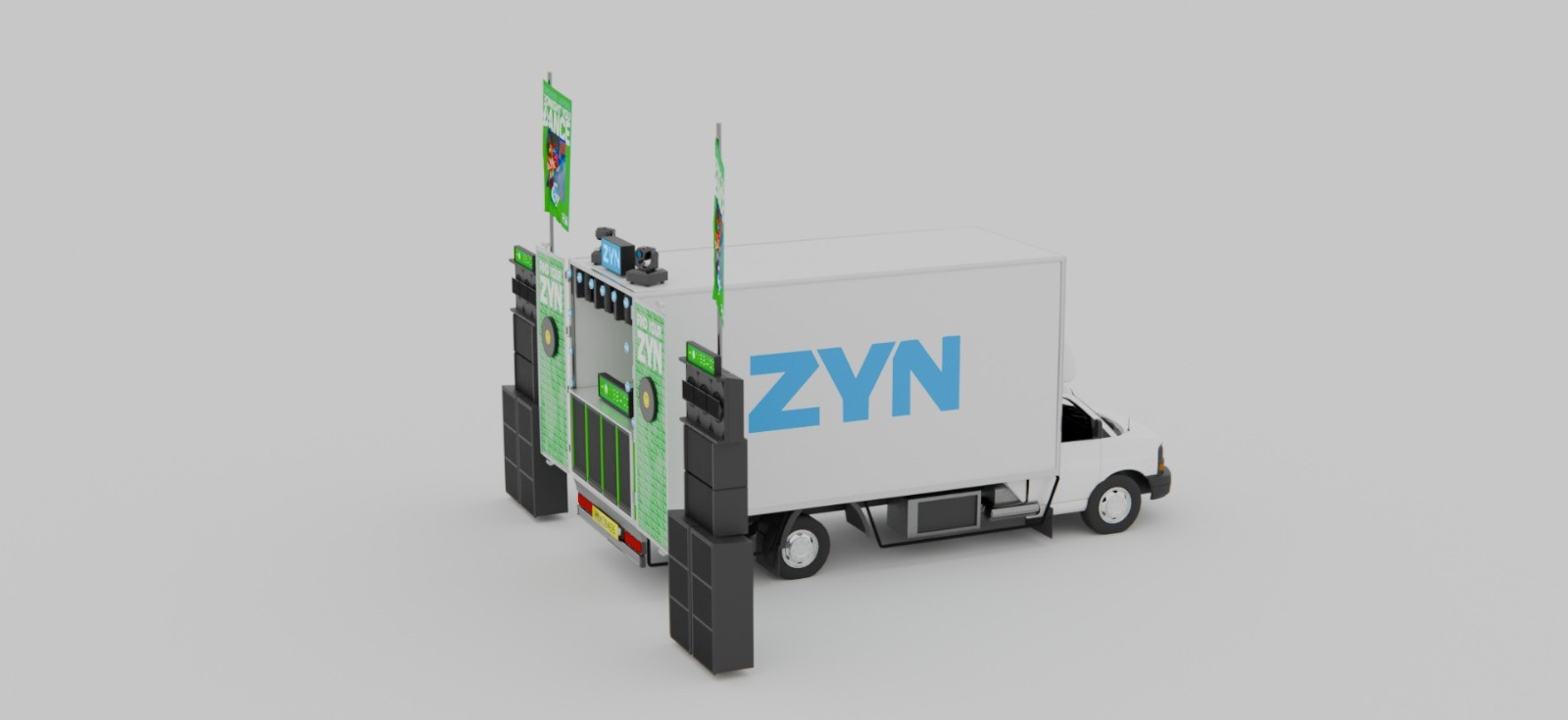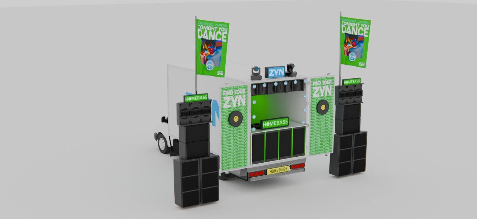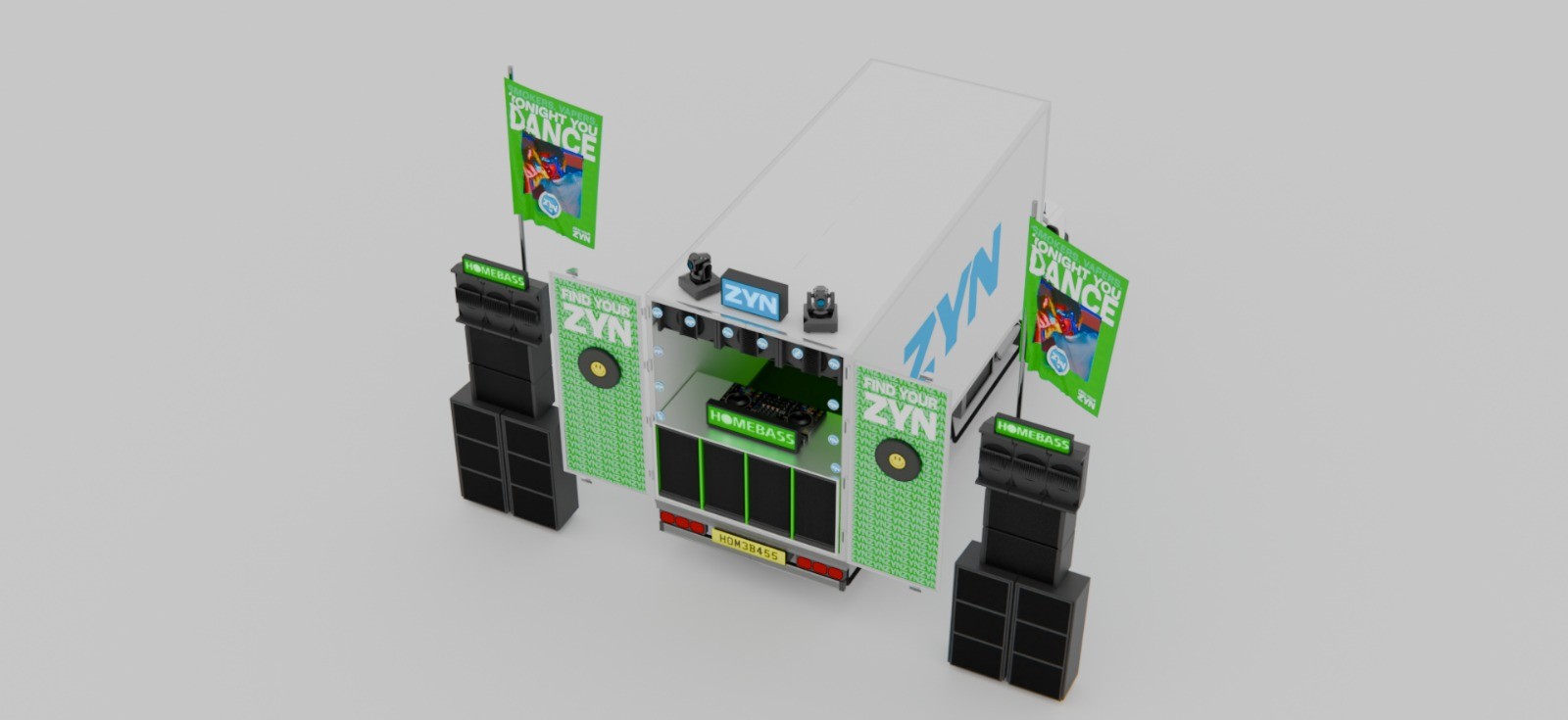3D environments which were modelled and created using assets to visualise an event for a collaboration between Homebass and ZYN.